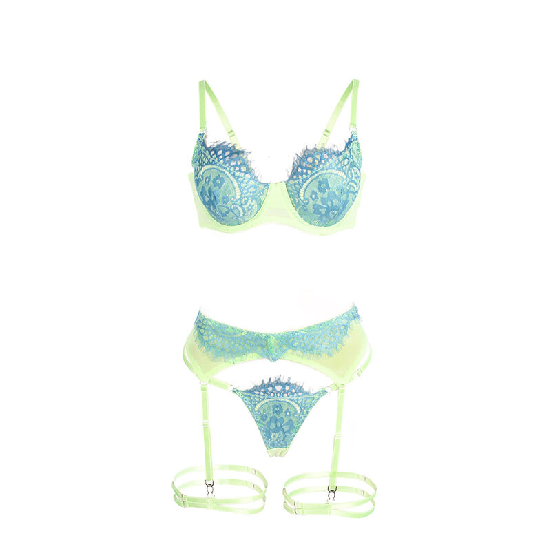 SUBBLIME – 955328 BRA SET WITH LACE AND GARTER LINES GREEN AND BLUE L/XL